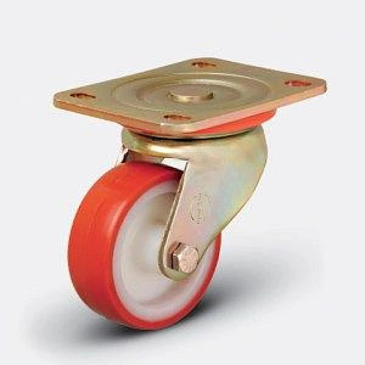 Колесо большегрузное полиуретановое поворотное (обод полиамид, контактный слой полиуретан, кронштейн стальной оцинкованный, в оси шариковый подшипник)